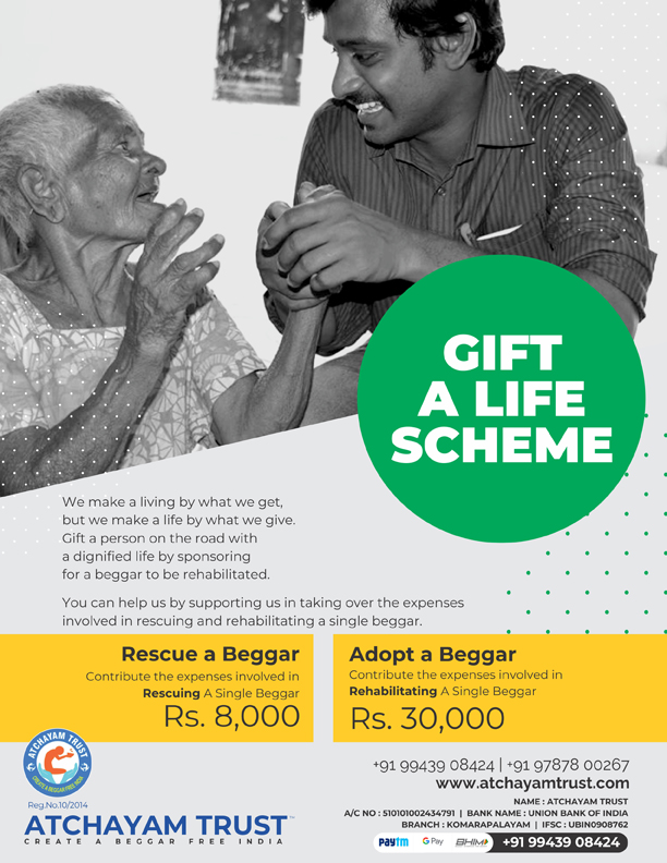 We make a living by what we get, but we make a life by what we give. Gift a person on the road with a dignified life by sponsoring for a beggar to be rehabilitated.