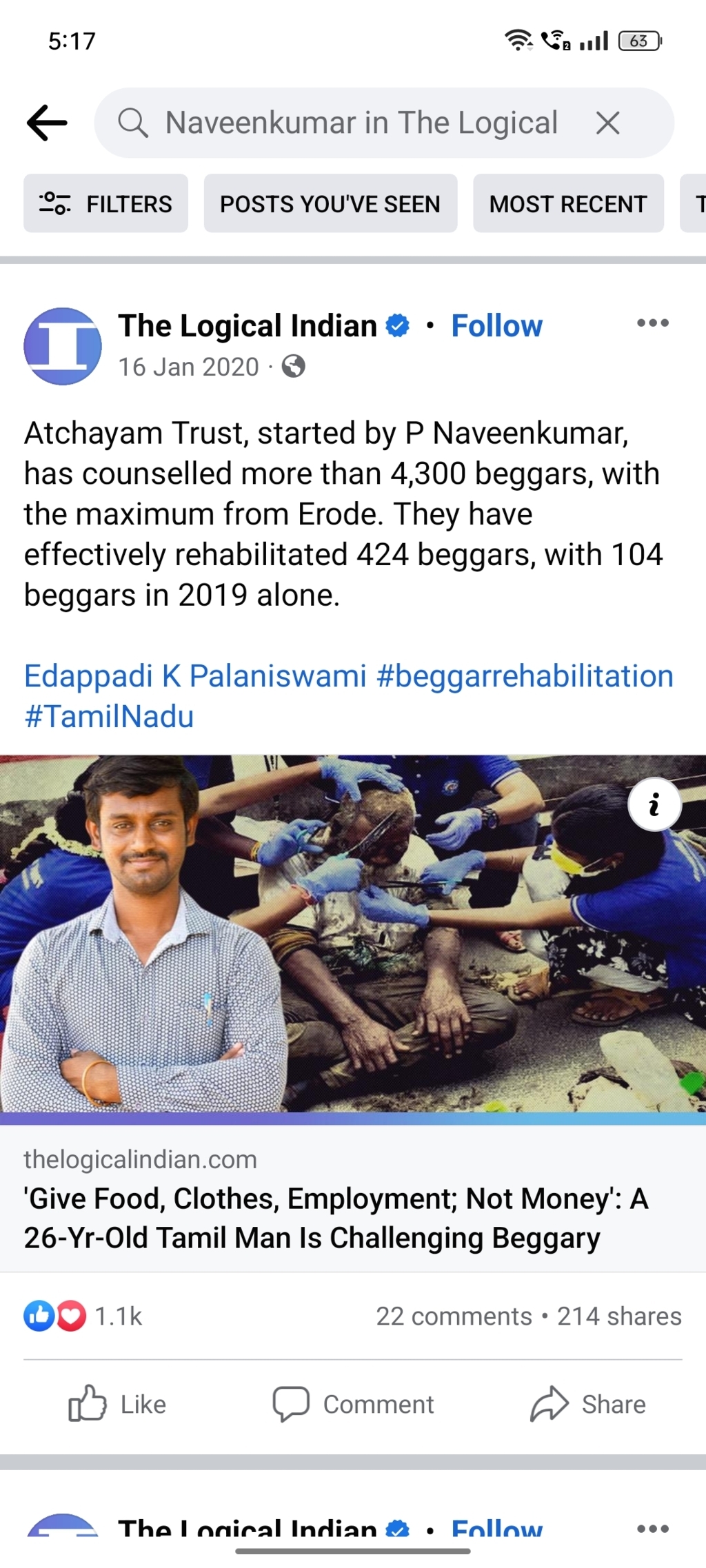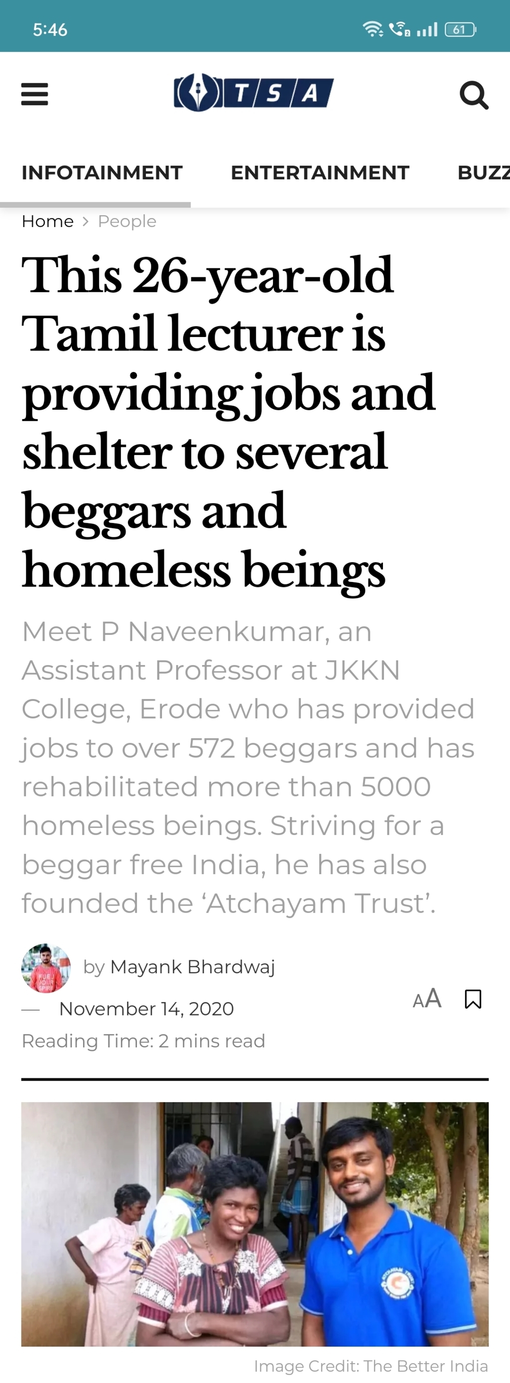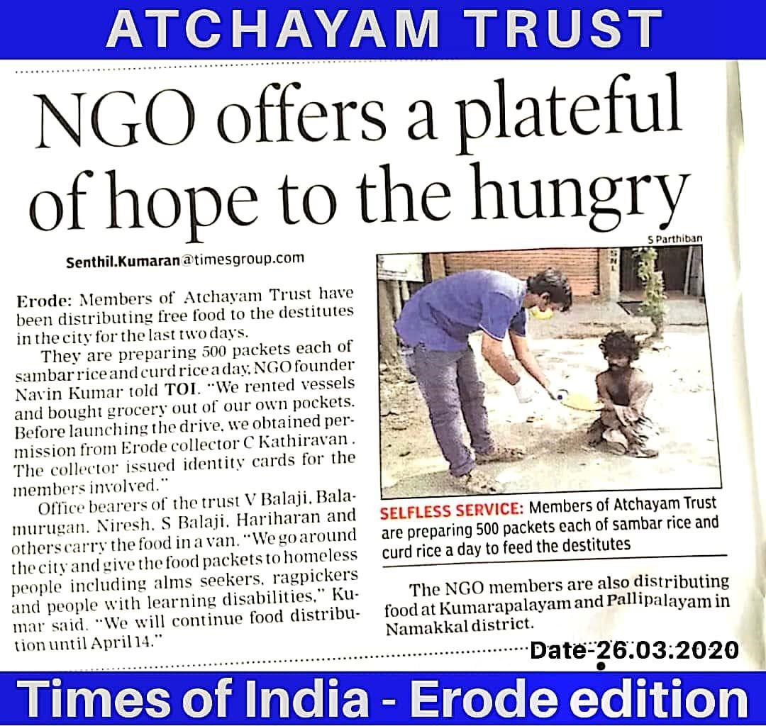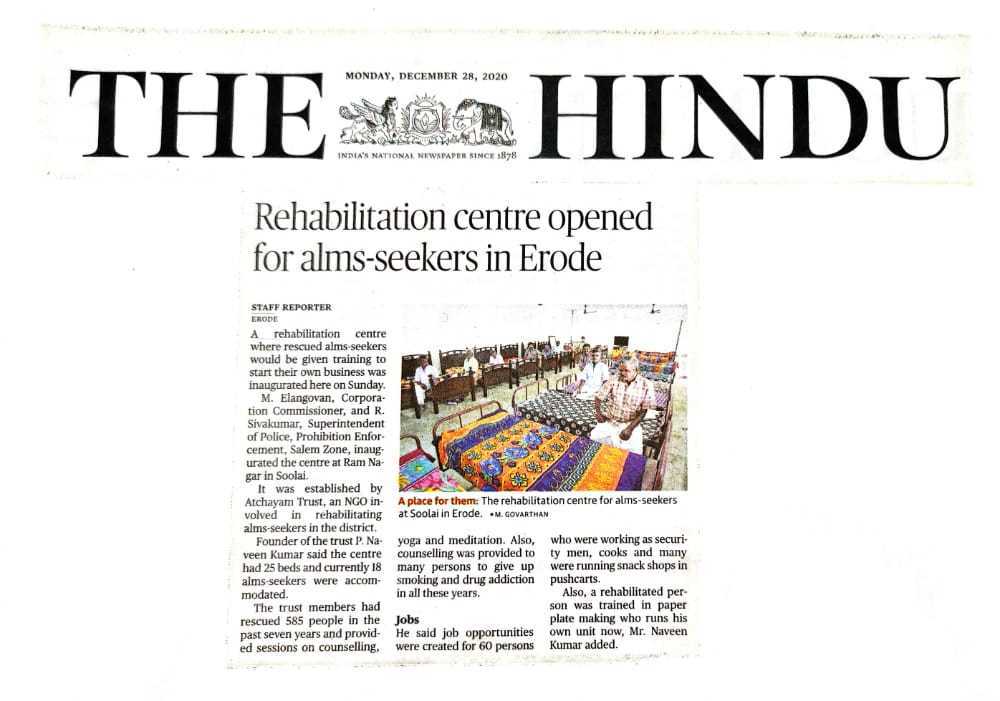 Atchayam Beggars Rehabilitation Home, Solarputhur to Lakkapuram road, New bus stand backside Solar, Erode - 638 002.